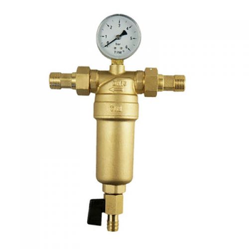 Фильтр сетч. промывной д-15 с манометром латунь,TIM