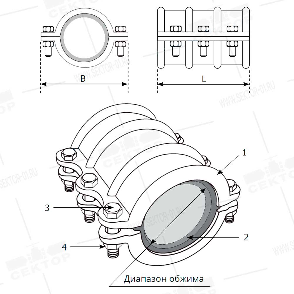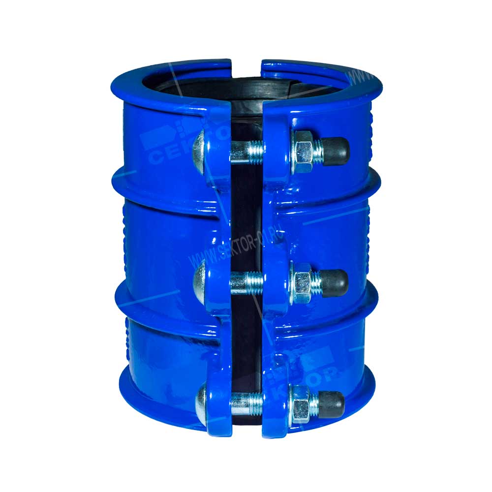 Муфта двухсоставная чугунная — это муфта, предназначенная для устранения протечек (свищей) и локальных повреждений (в том числе трещин), а также для соединения труб при ремонтно-восстановительных работах на трубопроводах водоснабжения и канализации из стали, чугуна, асбестоцемента и хризотилцемента с диаметром труб от DN100 до DN300