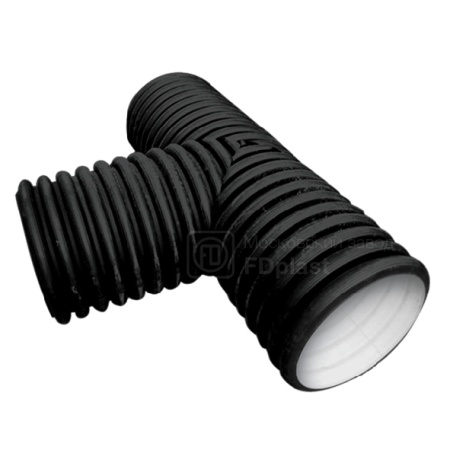 Тройник представляет собой двухслойный гофрированный фитинг используемый при монтаже гофрированных труб для устройства канализации и систем водоотведения.