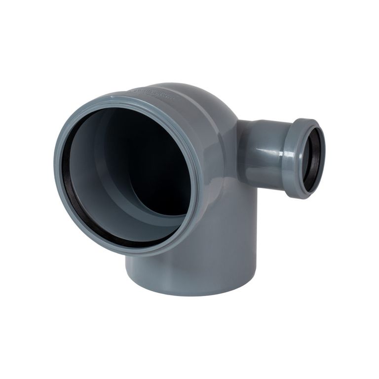 Отвод позволяющий подключить к основной канализационной линии D 110 дополнительную d50. Применяется для монтажа сложных канализационных систем с нестандартными схемами