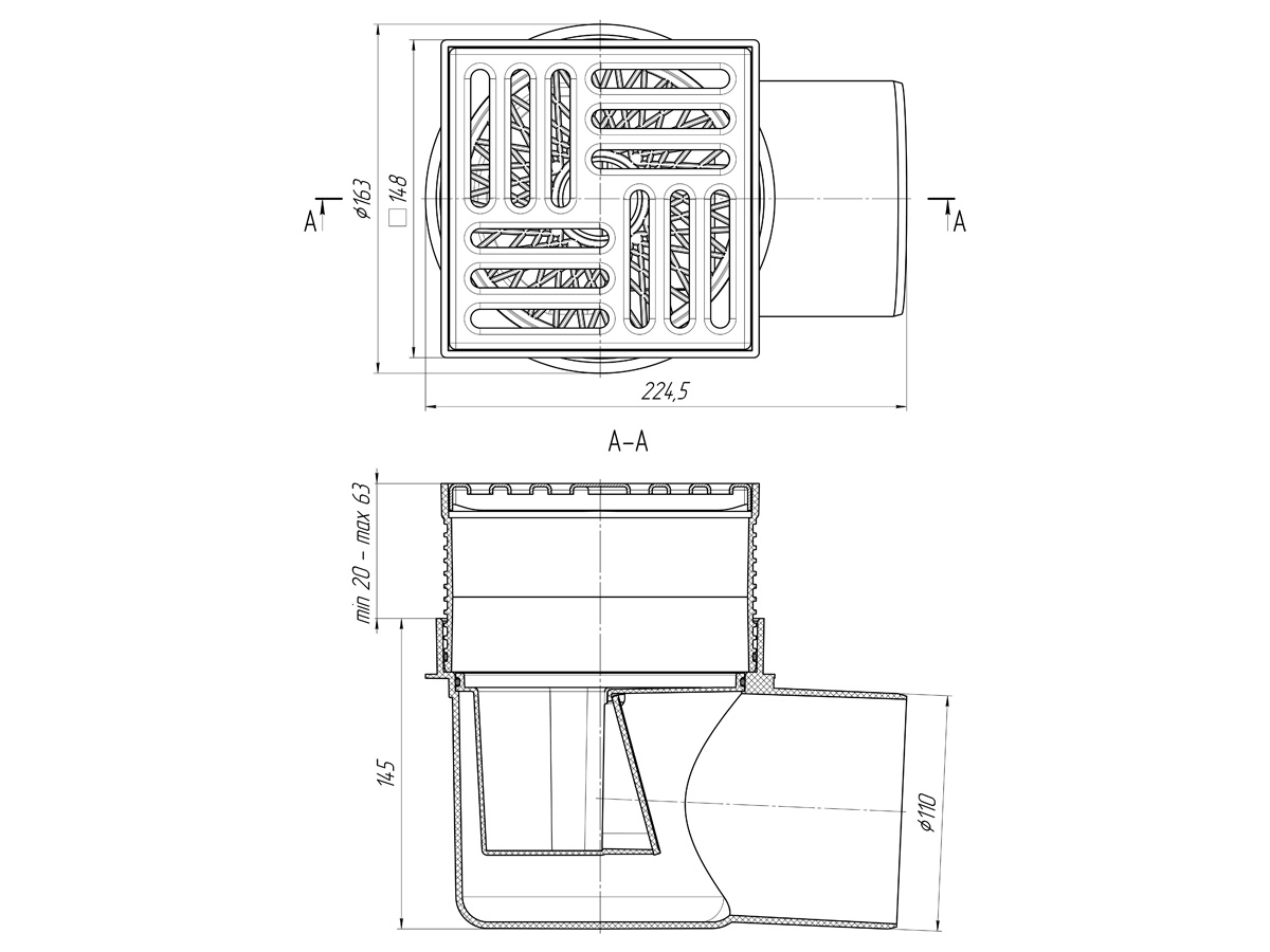 ПВХ трап СУХОЙ гориз.с НЕРЖ реш. д-110 РЕГУЛИРУЕМЫЙ 150х150(TQ1612)