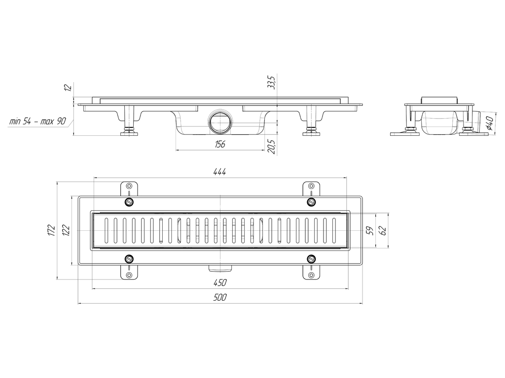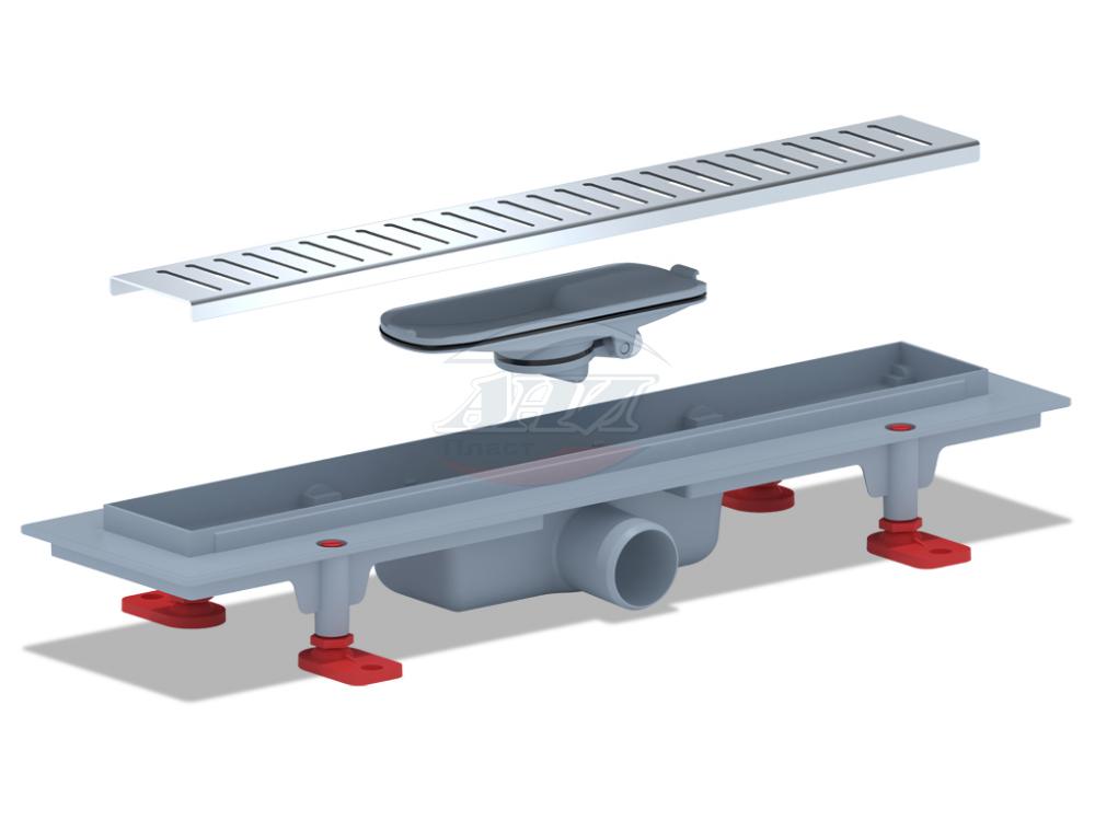 ПВХ Трап ПЛАСТ ЛИНЕЙНЫЙ сухой 450х62, диаметр выпуска 40 мм, решетка нержавеющая сталь, глянец(TLQ1445G)