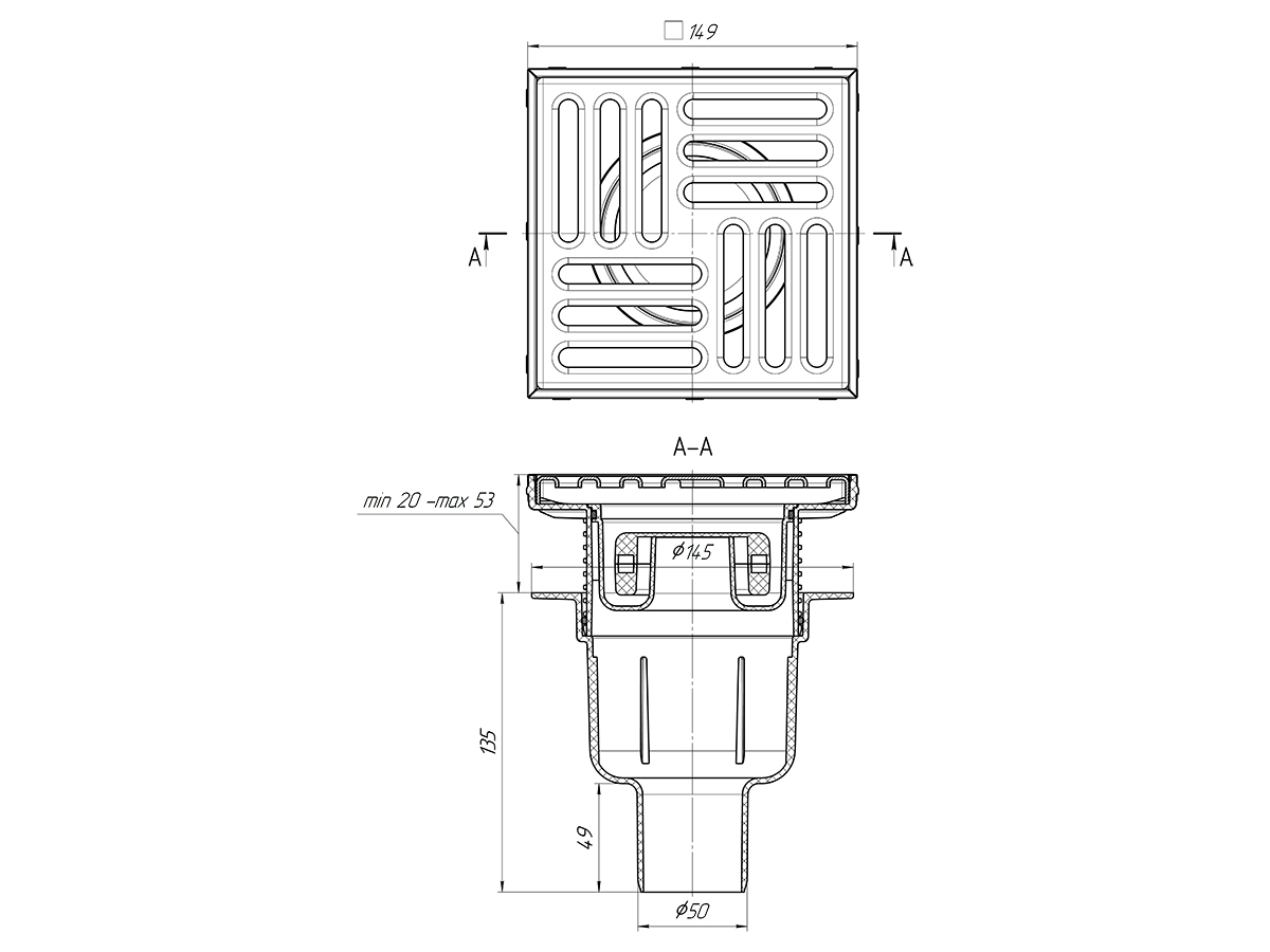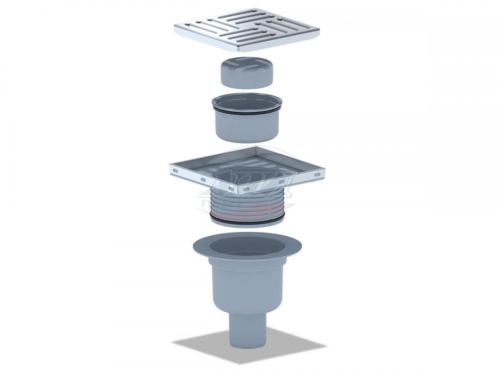 ПВХ трап СУХОЙ верт. с НЕРЖ реш. д-50 РЕГУЛИРУЕМЫЙ 150х150(TQ5712)