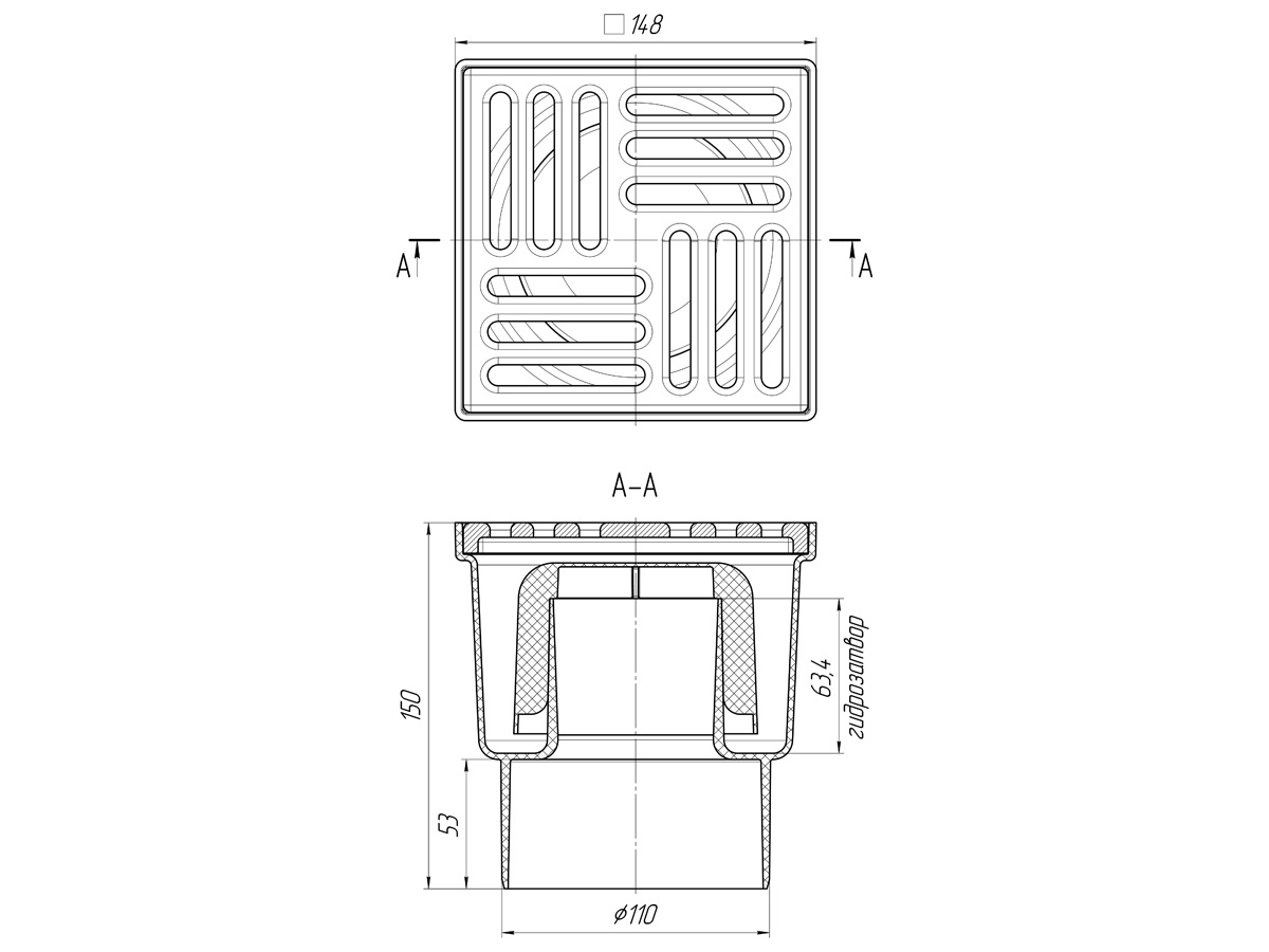 ПВХ трап верт д-110 с чугун.реш. 150х150(ТА1216)