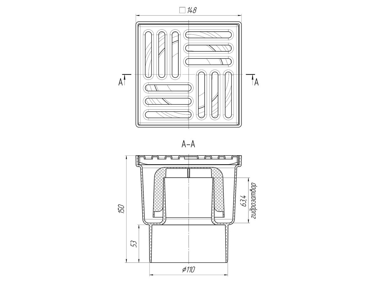 ПВХ трап верт д-110 с нерж.реш. 150х150(ТА1212)
