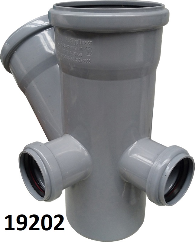 Двухплоскостные крестовины применяются во внутренней канализации. Они позволяют без дополнительных фитингов завести в стояк сразу несколько сантехнических приборов, находящихся в разных плоскостях, перпендикулярно основному стояку.