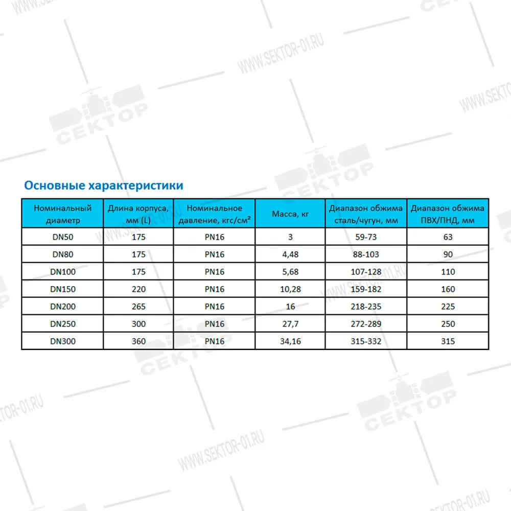 Муфта ДРК для соед. ПВХ/ПНД труб со сталь/чугунными Ду150 Ру16 (160/159-182)