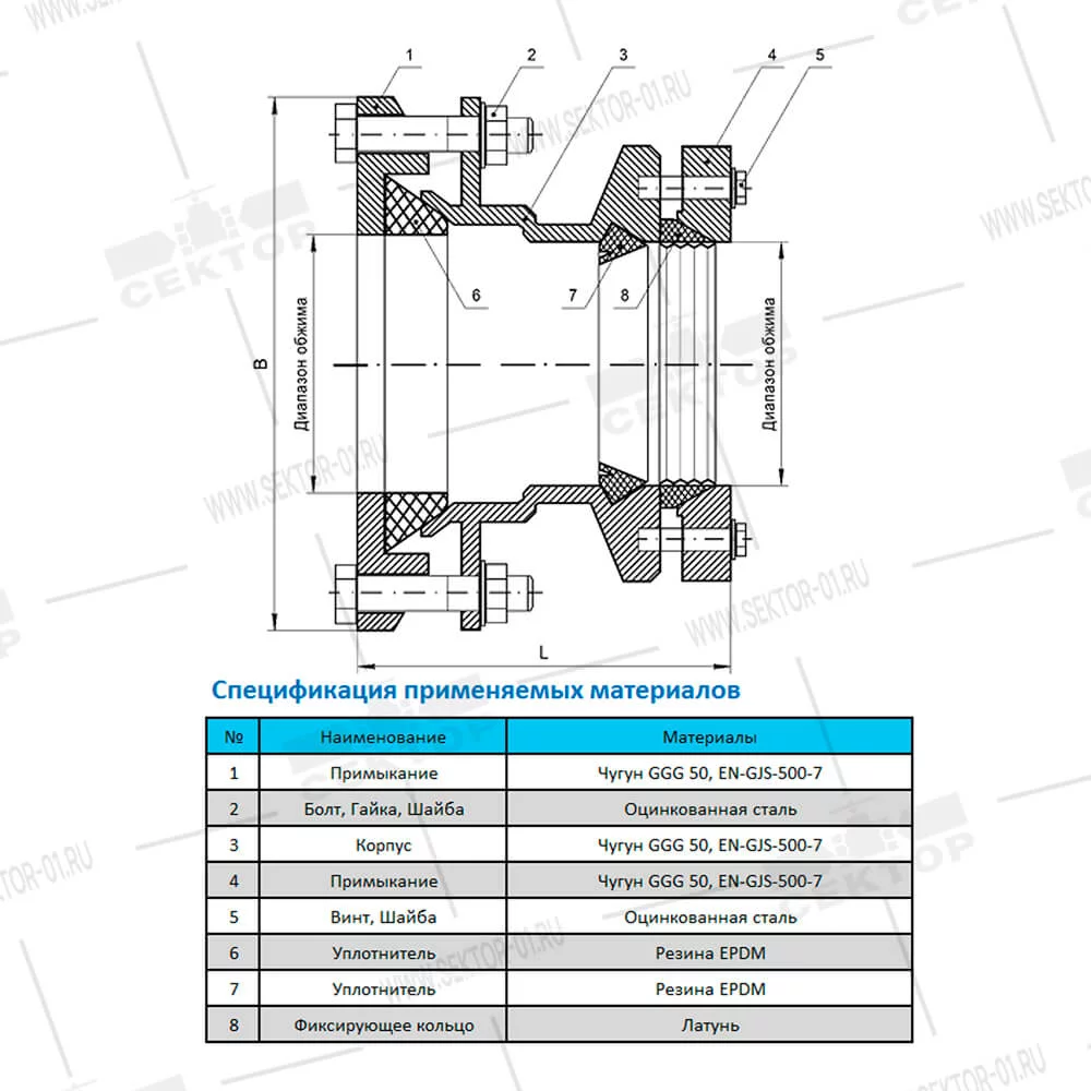 | Примыкание | чугун GGG 50, EN-GJS-500−7 |