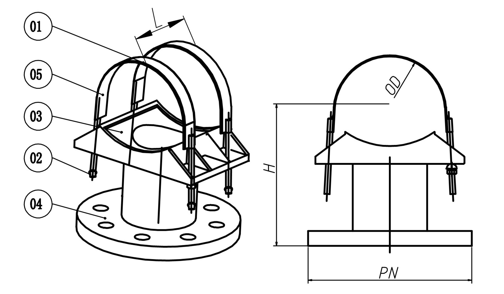 PN - внешний диаметр фланца седелки