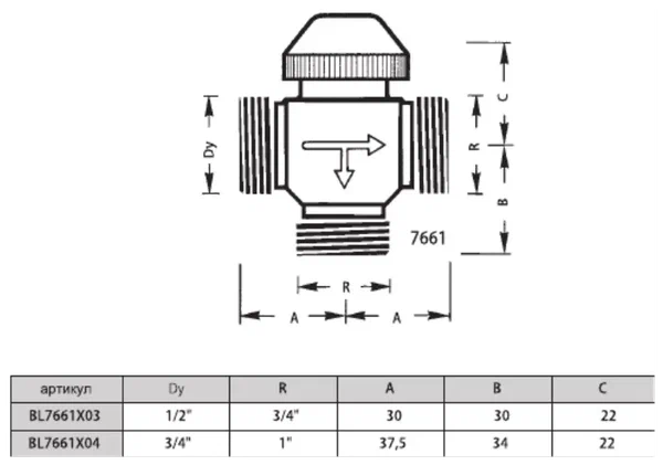 Термостатический разделительный клапан под термостатич. устр. М30*1,5 1"