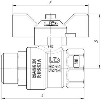 Кран шар латунный ГАЗ LD Pride Ду 15 ВН-НАР бабочка