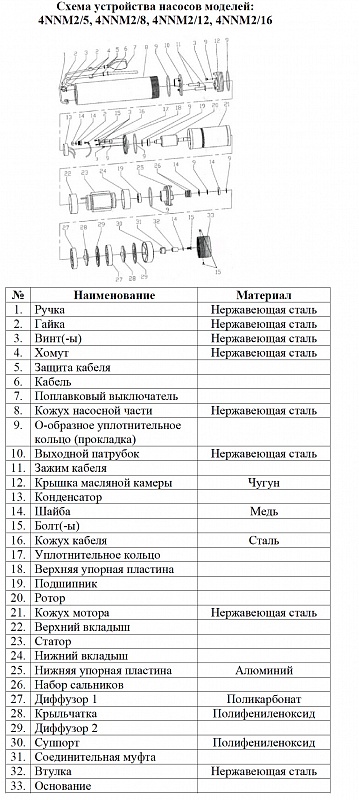 Насос для колодцев "Vodotok" 4NNM2/5 (с поплавком) (d-100,250Вт,50л/мин,Н-29м,прим.0,15%,кабель 16м)