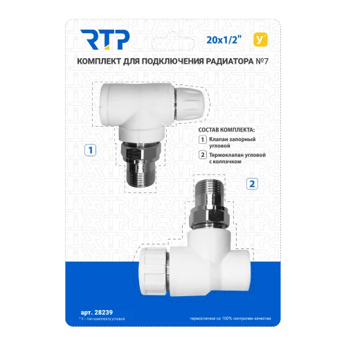 РРR Комплект №7 20x1/2 радиаторный угловой(Терм.+запор. клапан)