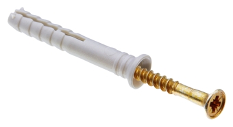 В этой конструкции используется дюбель из полипропилена и гвоздеобразный шуруп из стали с характерным витком резьбы. Монтаж производится легким забиванием гвоздя-шурупа в отверстие дюбеля. Внутри изделие оснащено «клинообразной» резьбой.