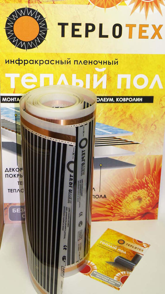 Плёночный тёплый пол Teplotex обладает плотной структурой и достаточной толщиной, поэтому она удобна в монтаже, не расслаивается, не сворачивается при расстиле.
