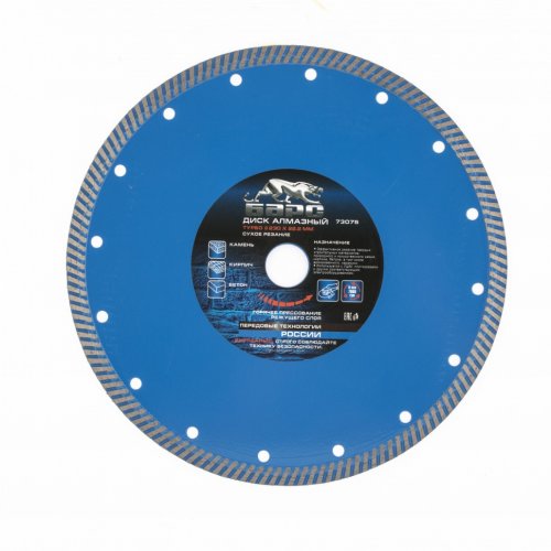 Алмазный диск Барс Турбо ф230х22,2 мм 73075 предназначен для сухого резания бетона, в т.ч. свежего, среднеармированного железобетона, камня, кирпича, гранита и песчаника. Его можно использовать с УШМ с посадочным диаметром 22,2 мм при проведении строительных и ремонтных работ.ПреимуществаДиск обеспечивает высокую производительность работ и может использоваться профессионально за счет ширины режущего слоя 10 мм и высокой концентрации алмазов.