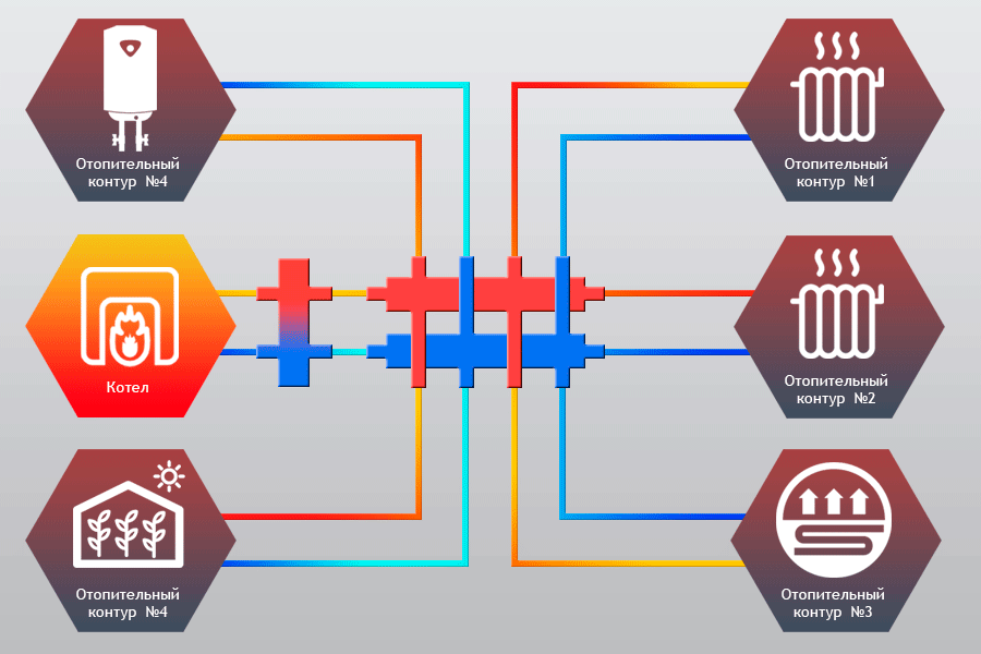 Предназначен для подключения контуров отопительной системы с или без циркуляционных насосов. Упрощает монтаж, имеет малые размеры, эстетичный внешний вид.