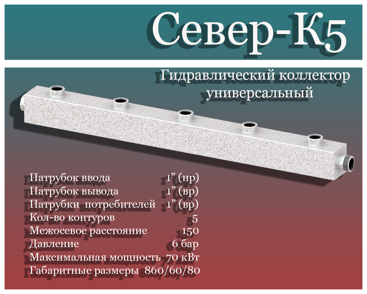 Гидравлический универсальный коллектор СЕВЕР К5 предназначен для распределения теплоносителя на 5 контуров.