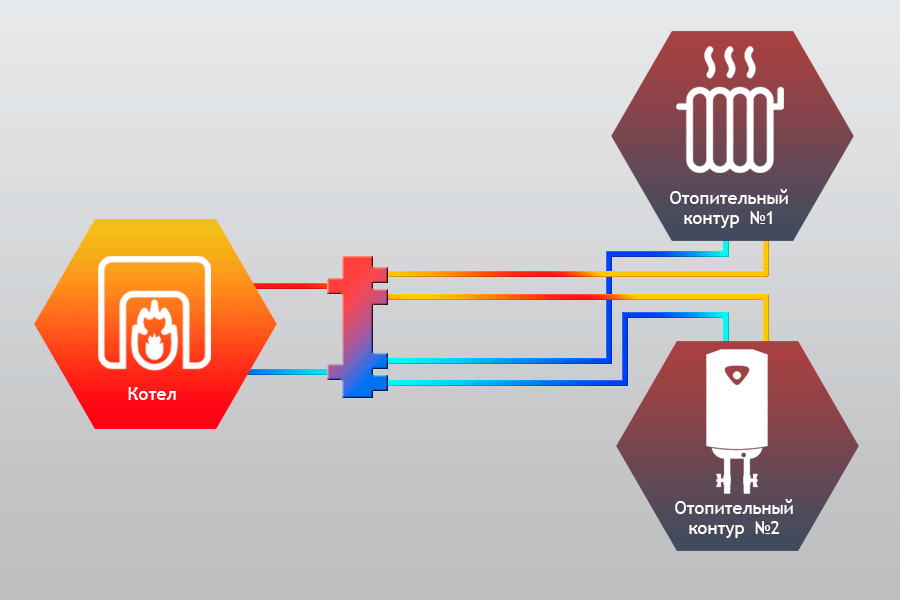 Предназначена для разделения контуров котла/котлов и контуров отопительной системы с циркуляционными насосами. Применяется при необходимости установки нескольких котлов, либо котла со встроенным насосом, в системе отопления с двумя контурами отопления с циркуляционными насосами.
