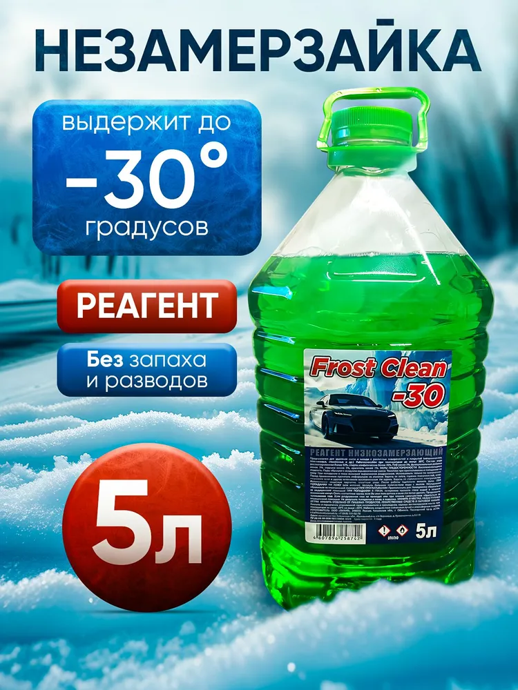 Незамерзающая жидкость Frost Clean -30 – это незамерзающая жидкость для стеклоомывателя, специально разработанная для суровых зимних условий. Она эффективна при температурах до -30°C и обеспечивает чистоту лобового стекла и фар вашего автомобиля. Формула без метанола и запаха делает её безопасной и удобной в использовании. Этот продукт надежно очищает окна от снега, грязи и соли, предотвращая их налипание. Жидкость экономично расходуется и не повреждает краску, резину или пластиковые детали автомобиля. Подходит для различной техники, от легковых машин до грузовиков и спецтехники. Это популярный выбор на российском рынке, сертифицированный и проверенный временем, предлагающий безопасность и надежность без лишнего запаха в зимние месяцы. Объем упаковки составляет 5 литров.